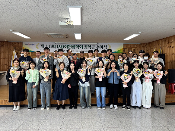 2008년에 설립된 (재)화원장학회는 지역 학생의 학업 안정과 우수한 지역 인재 양성을 위해 기본자산 10억원으로 매년 장학생을 선발해 지원해오고 있다. 장학회는 올해 4년제 대학생 22명, 2·3년제 대학생 1명, 초등학생 1명(예체능특기자)까지 장학생 총 24명을 선발했고 이날 장학금을 수여했다.