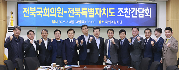 전북특별자치도는 24일 국회의원회관에서 전북 국회의원들과 조찬간담회를 열고 지역 발전을 위한 전략과 공동 대응 방안을 공유했다.