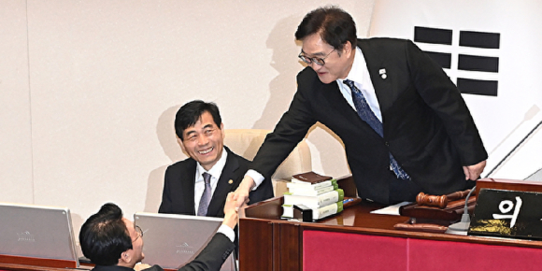 [포토] 악수하는 김민석 국무총리-우원식 국회의장
